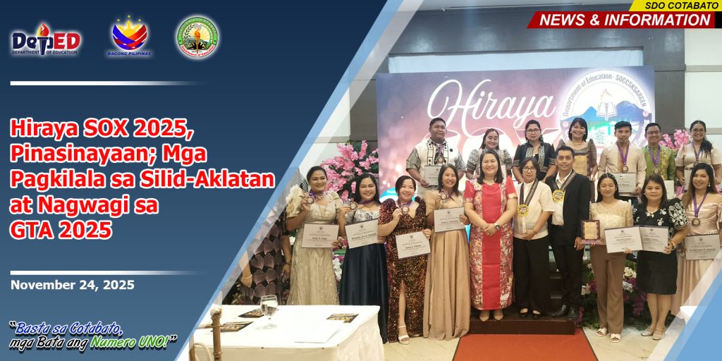๐Š๐จ๐ซ๐จ๐ง๐š๐๐š๐ฅ ๐‚๐ข๐ญ๐ฒ โ€“ Matagumpay na idinaos kahapon Nobyembre 22 ang Hiraya SOX 2025 Regional Launching and Awarding Ceremony na pinangunahan ng Department of Education SOCCSKSARGEN, tampok ang pagkilala sa mga natatanging tagapagtaguyod ng pagbabasa, panitikan, at functional school libraries sa rehiyon.